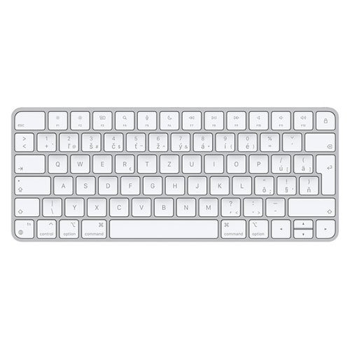 Apple Magic Keyboard - SK (USB-C) Na Magic Keyboard sa píše mimoriadne pohodlne a presne. Klávesnica je bezdrôtová a dobíjacia. Jej zabudovaná batéria má ohromnú výdrž. Na jedno nabitie udrží klávesnicu v chode dlhšie ako mesiac. S Macom sa spáruje automaticky, takže sa môžeš rovno dať do práce. A je k nej pribalený opletený USB-C kábel, ktorým sa dá pripojiť k USB-C portu Mac pre spárovanie a nabíjanie. Špecifikácie produktu: - externá bezdrôtová nabíjacia klávesnica - kábel na nabíjanie USB-C - bezdrôtové pripojenie cez Bluetooth - multimediálne klávesy - slovenské rozloženie kláves - vyžaduje Mac s macOS 11.3 alebo novším, iPad, iPhone a iPod s iOS 14.5 alebo novším Rozmery: - výška: 0,41 - 1,09 cm - šírka: 27,89 cm - hĺbka: 11,49 cm Hmotnosť: 0,239 g Obsah balenia: - klávesnica Magic Keyboard - kábel USB-C