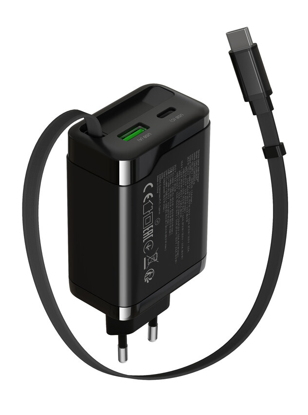 - Funkcie napájacieho adaptéra a zdroja :GaN technológia, Power Delivery, Quick Charge, Vysúvateľný USB-C kábel