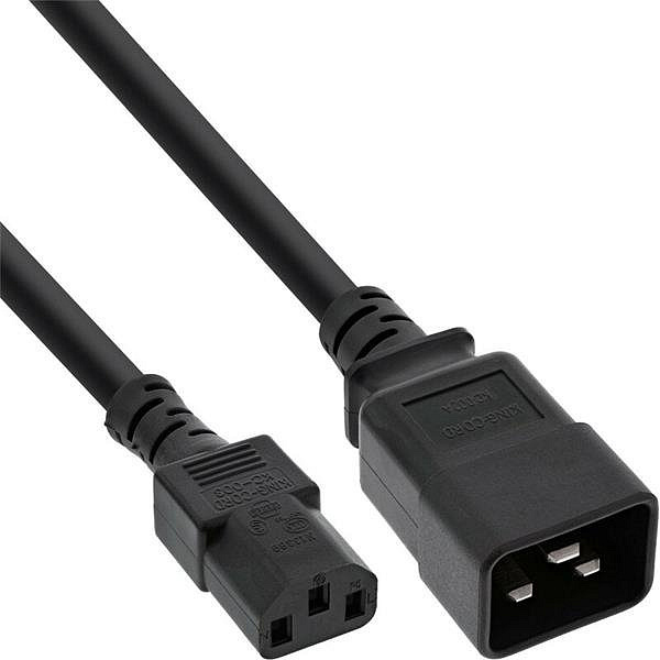 Kábel napájacieho adaptéra, zástrčka IEC-60320 C20 na zástrčku C13 pre zariadenia do 10 A čierna farba Parametre Konektor 1 - C20 - Priamy Konektor 2 - C13 - priamy Dĺžka - 3m Farba - čierny Prierez Vodiča - 1.50mm2 LSOH - nie