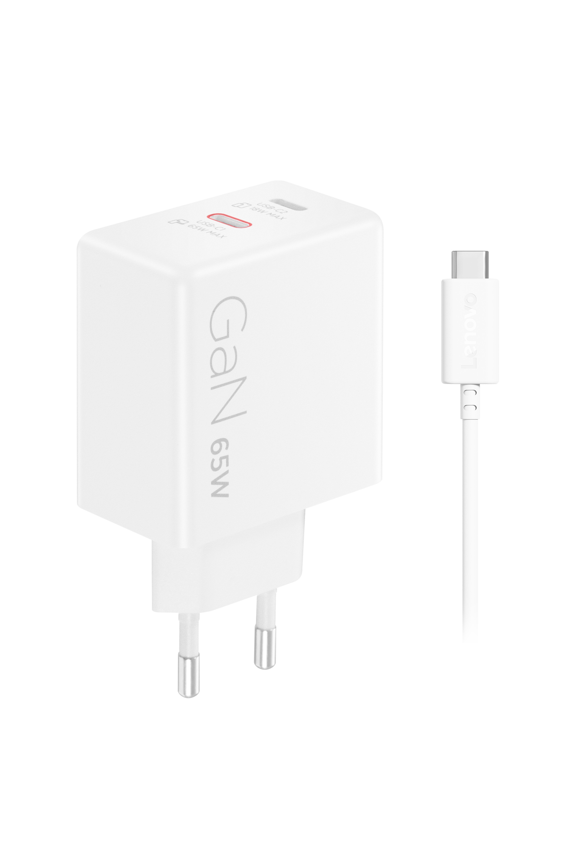 Part Number 40AW065WEU Packed Weight 0.225 kg Packed Dimensions (L x D x H) 120 mm x 120 mm x 35 mm Included Accessory 1 x USB cable 1.5 M 1 x UG 1 x One year warranty card Package Type Color box Shipment Group 1 x adapter 1 x USB cable 1.5 M 1 x UG 1 x One year warranty card Product Weight 0.115 kg Cable Length/Type 1.5 M / Type C Height 87.3 mm Depth 30 mm Length 50 mm Connectivity 2 pin Agency Approvals ANATEL, AZ COC, BIS, BSMI, CCC, CE/IES, CMIM, EAC, ECAS, LVE+RoHS, GCC, KC, MOE, NRCs+SABS, RCM, Safety Mark, SEC, S-Mark, SONCAP, ST-COA, TISI, UA LVD+RoHS,UL Color White Charging Port 2 x USB-C Output USB-C1: 45W USB-C2:18W Input Power 100-240~50/60Hz 1.5A Power Plug EU Supported OS OS Independent Brand Lenovo