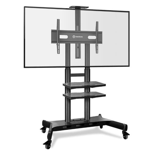 ONKRON TS1891 je univerzálny TV vozík na uzamykateľných kolieskach ideálny pre väčšie a ťažšie obrazovky. Tento ťažký dizajn pozostáva z komponentov SPCC (uhlíková oceľ valcovaná za studena), čo zlepšuje nosnosť. Montážna konzola je kompatibilná s VESA (minimálne 200 mm x 200 mm maximálne 800 mm x 600 mm) s väčšinou veľkých, plochých alebo zakrivených TV/herných monitorov: LCD, LED, OLED, QLED, HD, 4K;