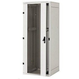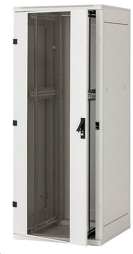 Vysoká pevnost konstrukce RMA má robustní svařovanou konstrukci. Vysoká kvalita zpracování a nejnovější technologie zajišťují skvělý vzhled rozvaděče. Stojiny mají nový tvar, jsou širší a jsou z materiálu síly 1,3 mm. Flexibilní otevírání dveří Vlastní systém pantů umožňuje otevírání dveří pod úhlem 165°. Dveře lze snadno demontovat a přestavět na otevírání na opačnou stranu. Dvoukřídlé dveře jsou opatřeny nasazovacími panty. Sklo Plechové dveře s vlepeným sklem se vyrábějí z tvrzeného bezpečnostního skla tl. 4 mm, které je odolné běžným nárazům. Při rozbití tvoří množství drobných úlomků jako automobilové sklo. Z důvodů bezpečnosti doporučujeme po instalaci zařízení do rozvaděčové skříně zavírat dveře, aby nemohlo dojít ke kolizi s jinými předměty. Použité sklo je zkoušeno v certifikované zkušebně a odpovídá požadavkům normy ČSN EN 12150-1+A: Sklo ve stavebnictví – Tepelně tvrzené sodnovápenatokřemičité bezpečnostní sklo. Zkoušené sklo splňuje normu na rozpad skla po rozbití, Certifikát shody CQ-24-2023, Protokol o zkoušce IKATES 58A-2024. Kliky Tritón Klika Tritón je celokovová. Lze volit mezi standardní zámkovou vložkou s univerzálním klíčem nebo polocylindrickou. Nastavitelné vertikální lišty 19“ vertikální lišty mohou být plynule nastaveny v libovolné hloubce rozvaděče. To usnadňuje montáž zařízení i organizaci propojovacích kabelů. Odnímatelné bočnice a zadní kryt RMA je rozvaděč se svařovaným skeletem, s odnímatelnými bočnicemi a zadním krytem. Ke skeletu jsou uchyceny zámky, standardně s jednotným klíčem. Dveře pro ventilační jednotky U tohoto typu rozvaděče je možno objednat speciální plechové dveře s přípravou pro montáž ventilačních jednotek RAx-CH-X0x-X3. Více informací naleznete v sekci Aktivní chlazení. Vylamovací záslepky Kabelové vstupy rozvaděče jsou zakryty vylamovacími záslepkami. Proti pronikání prachu je možné kabely v otvoru utěsnit záslepkou s kartáčem. K ochraně kabelů před poškozením slouží lemová hrana (obojí je součástí příbalu rozvaděče). Otvor pro ventilační jednotku Rozměrný otvor krytý vylamovací záslepkou umožňuje montáž a demontáž ventilační jednotky Tritón zvenku rozvaděče bez nutnosti použití šroubů. Kolečka, nivelační nožičky, podstavec Rozvaděč lze umístit na nivelační nožičky (součástí příbalu), případně s použitím volitelné výbavy na podstavec, kolečka, nebo vysokozátěžová kolečka s výztužným rámem. Zadní strana rozvaděče Na zadní stěně rozvaděče jsou dva kabelové vstupy kryté vylamovacími záslepkami. Jeden je u horního a druhý u spodního okraje krytu. Další kabelové vstupy jsou na stropě a v základně rozvaděče. Perforace skeletu Rozvaděče RMA mají perforovaný skelet pro zajištění přístupu chladícího vzduchu k instalovaným technologiím. Chlazení je možno podpořit instalací ventilačních jednotek. Pospojení Všechny oddělitelné části jsou vzájemně pospojeny dle požadavků příslušné normy. Flex frame Systém umožňuje u šířky 800 mm instalaci posuvných ližin v rozponu 19“, 21“ a 23“. Další možností je posunout 19“ rozteč vertikálních lišt k jedné straně a tím získat větší prostor na straně druhé. Středový pár vertikálních lišt U rozvaděčů hlubších než 800 mm dodáváme již v základní výbavě třetí pár vertikálních lišt pro montáž technologie. Díky svému otevřenému profilu neomezují instalaci hlubších zařízení. Na středové vertikální liště lze kratší zařízení uchytit pomocí různých typů podpěr (volitelné příslušenství). Široké stojiny skeletu Široké stojiny skeletu jsou určeny pro dodatečnou montáž příslušenství, například rozvodných panelů nebo vertikálních vyvazovacích panelů, které tak nezabírají 19“ prostor v rozvaděči. Díky promyšlenému uchycení nebrání rozvodné panely použití výsuvných serverů ani u rozvaděčů 600 mm širokých. Příslušenství ve stojinách Stojiny jsou opatřeny na vnitřních hranách montážními otvory v celé své výšce. Otvory jsou v unitové rozteči vertikálních lišt a lze je použít pro montáž některých druhů příslušenství. Příbaly: Klíč – odnímatelné kryty 2x Klíč – přední dveře 2x Plovoucí matice M6 16x Šroub M6 x 12 16x Podložka plastová 6,4 16x Protiprachová záslepka 1x Lemová hrana 1 m Rektifikační šroub/noha pro rozvaděč 4x Matice M10 4x